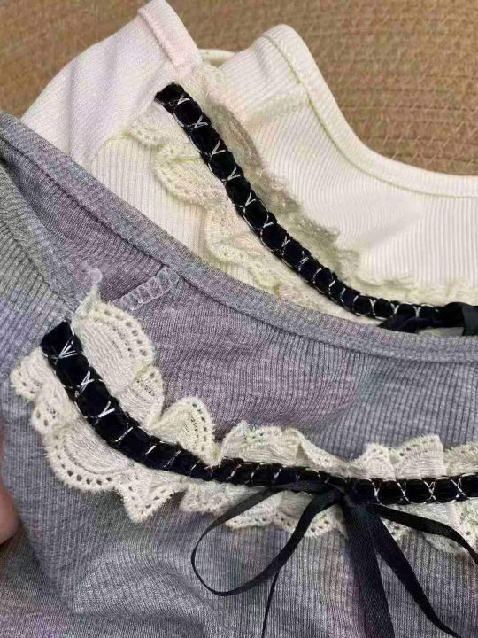 法式蕾丝拼接短袖459件6.5,面料柔软有弹力,蝴蝶结蕾...