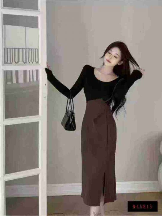 法式气质设计感连衣裙378件7.9,面料舒适,撞色拼接,...