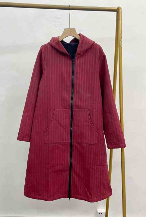 82件连帽拉链长款外套。单款单色,内里加绒,面料品质...