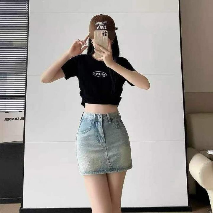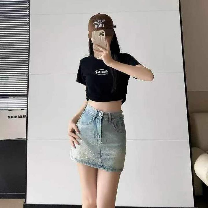 高品质烫钻高腰修身牛仔半身裙,单款单色,独立包装,...