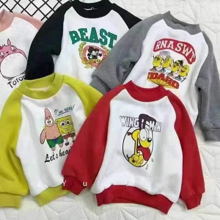 [太阳]5.8元清2000件、秋冬童装加绒圆领保暖卫衣,好质量的,款式花型很多,上百种颜色花型随机混发,100件起批6.8元一件