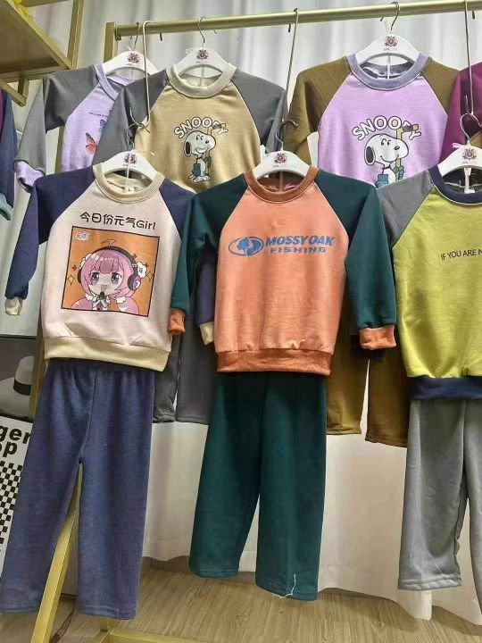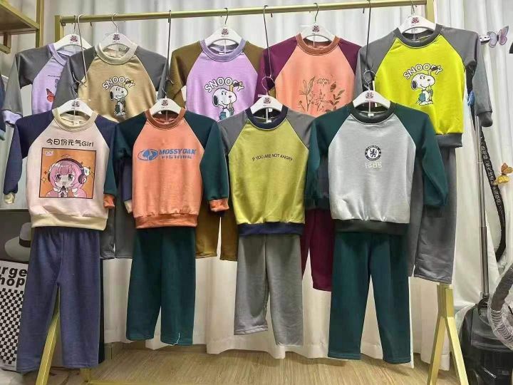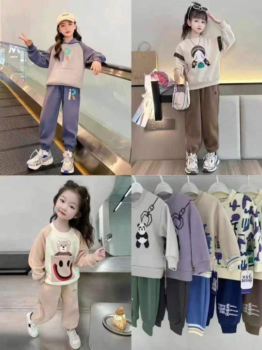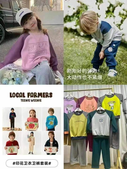 童装圆领套装两件套~~~8.8元清1888套[太阳]300套起9.9元,加绒不加绒混配!童装圆领套装卫衣两件套,一捆三个码数2-8岁,花型颜色多多均配