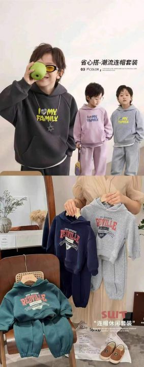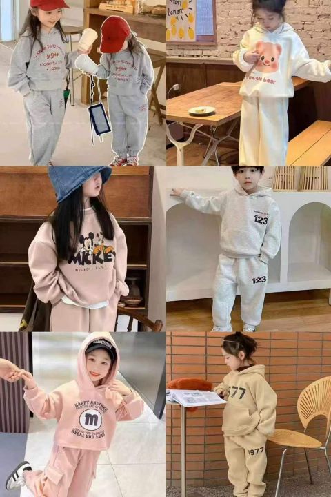 [太阳]9.5元清童装卫衣套装3600套,100套起9.9元,2-8岁 一捆齐色齐码数L到xxl码,小整款多花型颜色,有圆领套装/连帽套装。均匀发货,纯棉卫衣内里抓绒。