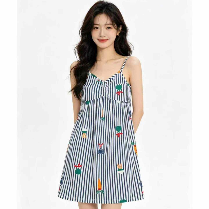 电商仓回收1700件蓝白条纹甜美可爱邻家少女吊带连衣裙,码数均码,80-130斤可穿。面料柔软舒适,大货齐整,带吊牌独立包装,分货➕0.5