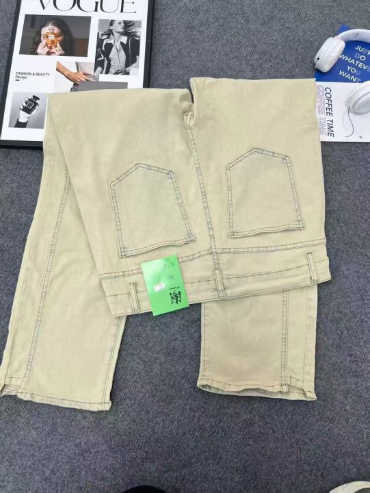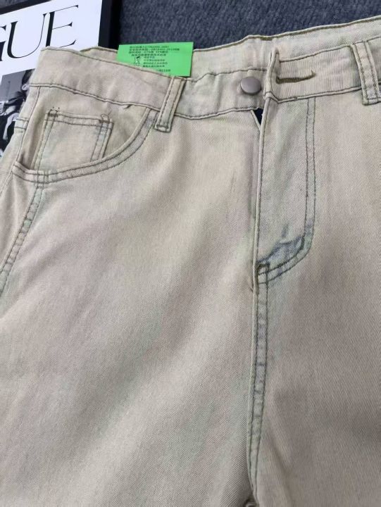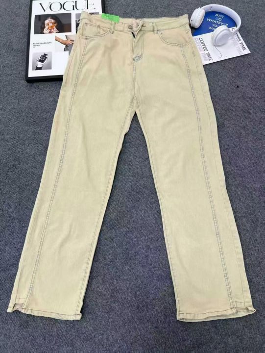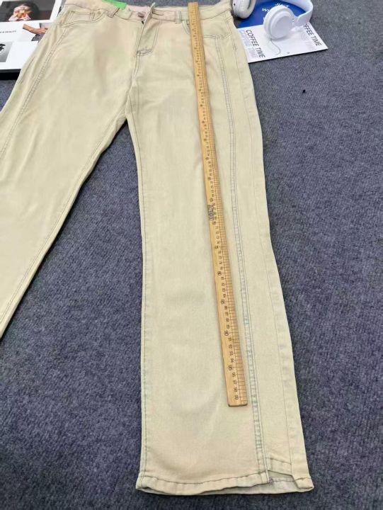 男女同款个性染色水洗牛仔裤176条,全清11.8元,正品独立包装,码数S-XXL,杏色色窄版微喇牛仔裤男女春季显瘦显高直筒长裤美式高街修身微喇裤