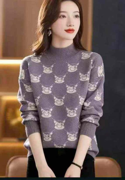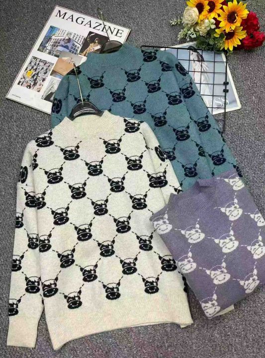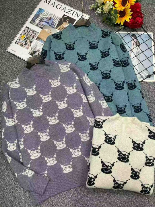 秋冬新款韩系慵懒风宽松百搭提花包芯纱套头毛衣,独立...