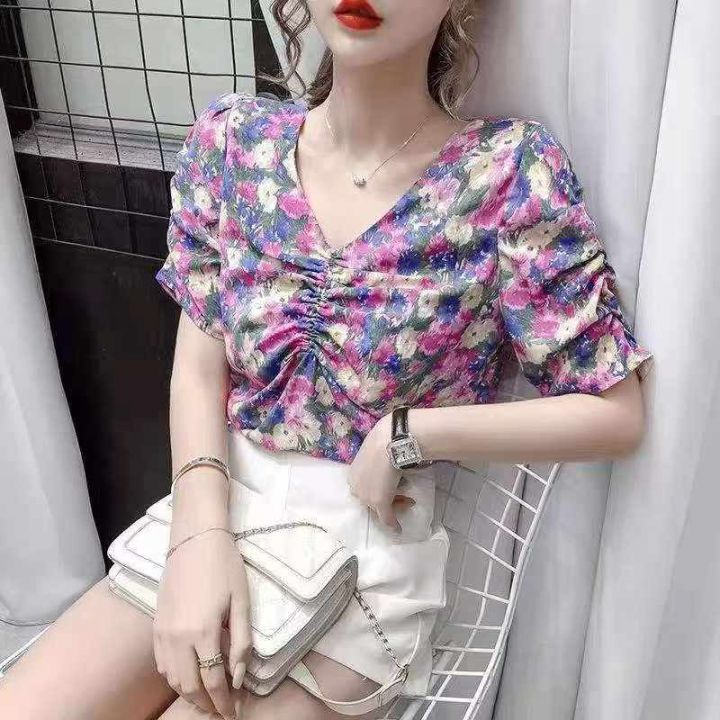 电商仓回收276件仙女碎花韩版V领褶皱泡泡袖时尚上衣,码数L-XL。手感舒适,质量很好。独立包装,分货➕1