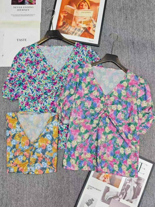 4.9清电商仓回收276件仙女碎花韩版V领褶皱泡泡袖时尚...