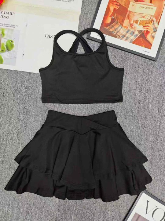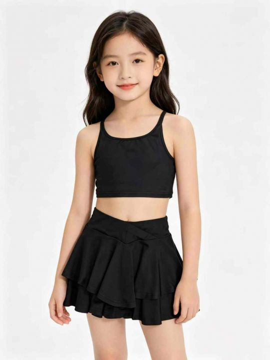 电商仓回收217套韩式洋气黑色背心百褶裙女童中大童泳衣套装,码数10y-14y。面料有弹力,质量很好,独立包装,分货➕0.5