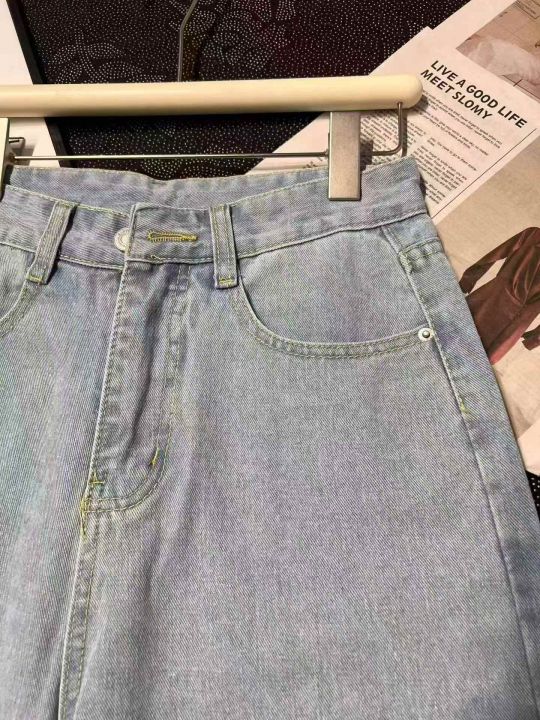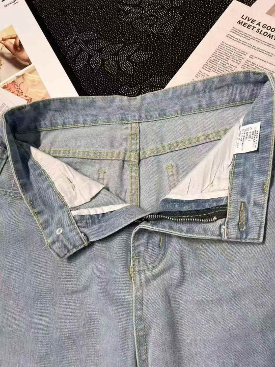 复古水洗浅蓝色阔腿牛仔裤 50件,码数~S一个码,全清10.8元,正品独立包装,货品干净,美式复古水洗浅蓝色牛仔裤女春秋宽松直筒阔腿裤百搭休闲通勤长裤