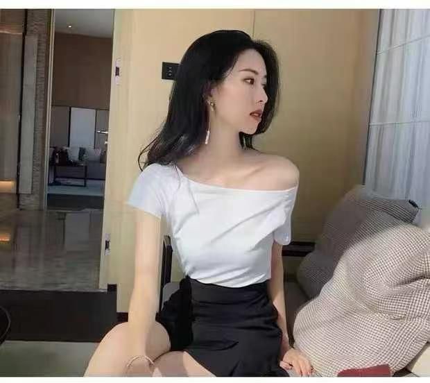 纯棉辣妹一字露肩短袖T桖 89件(黑色79件 白色10件)全清5.8元,正品独立包装...