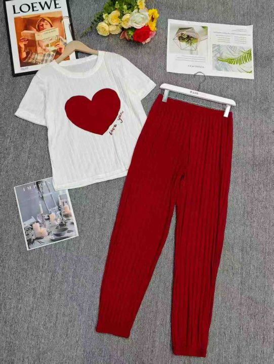 电商仓回收1088件外贸亚马逊速卖通爱心刺绣女士睡衣套装,码数S-2XL。版型质量很好,面料舒适有弹性。有独立包装,分货➕1