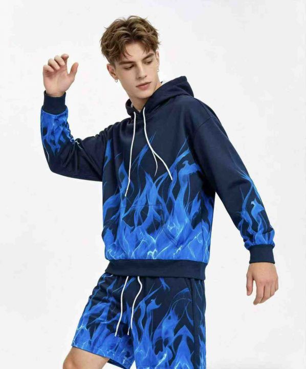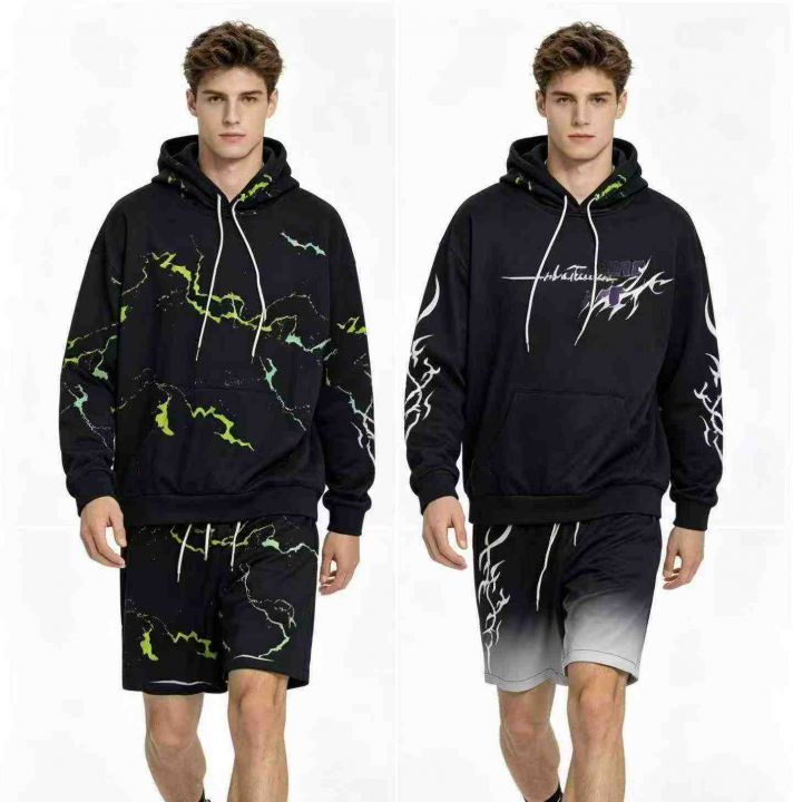 电商仓回收350套外贸跨境潮流男士连帽卫衣短裤套装,码数M-2XL。版型比较宽松,面料柔软舒适有质感。独立包装,分货➕1