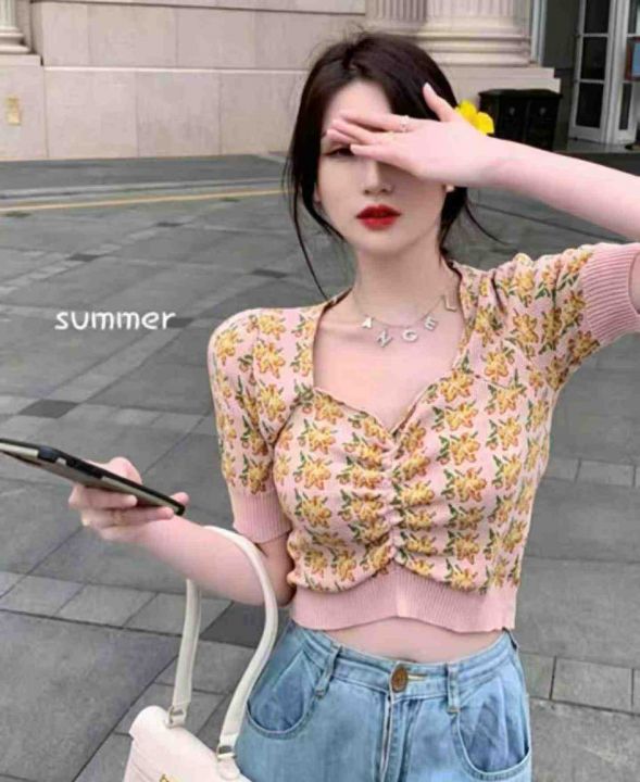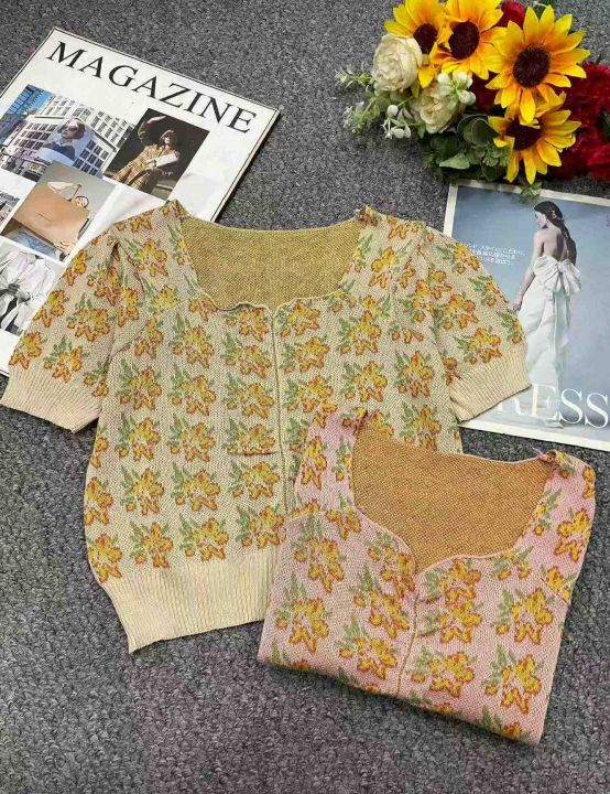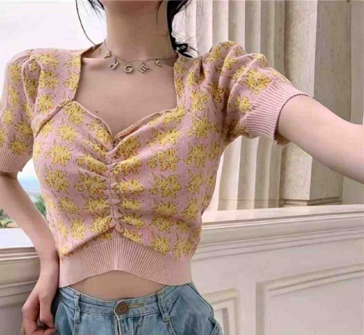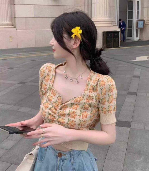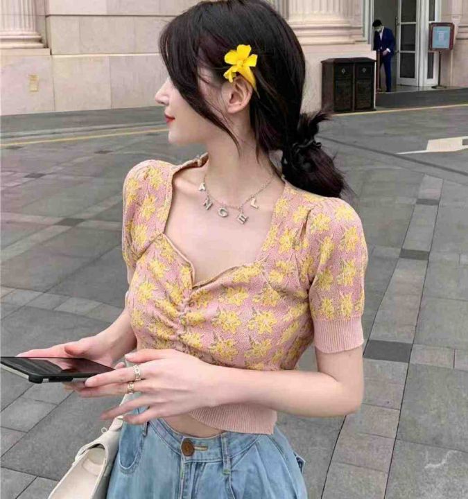 夏季新款短款法式复古别致设计感小众泡泡袖甜美方领针织T恤,独立包装,均码面料柔软舒适有弹力,150件左右,全清5.9元超低价秒杀!
