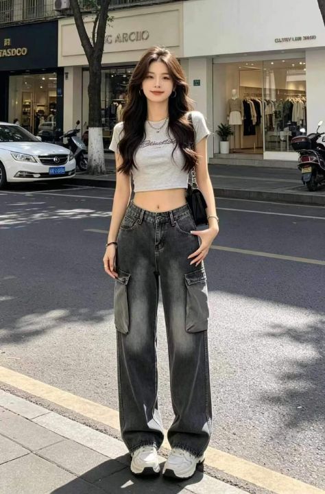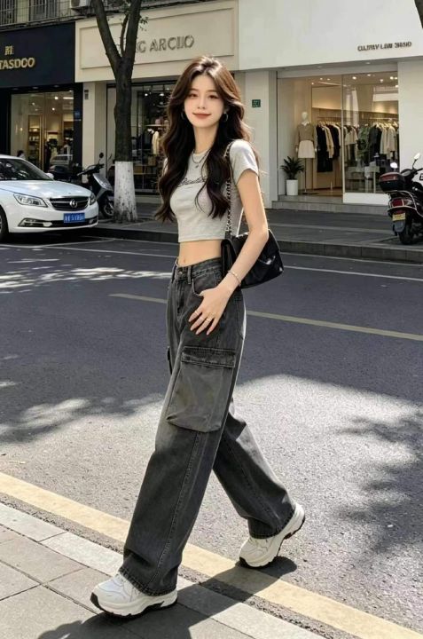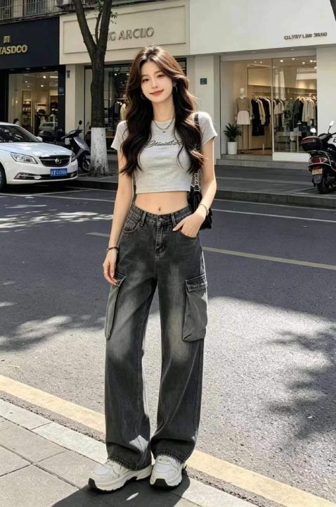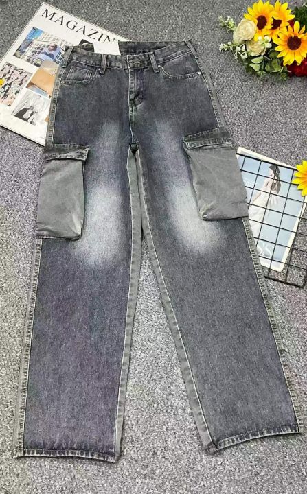春季新款网红复古洗水棉直筒阔腿多袋工装牛裤,独立包...