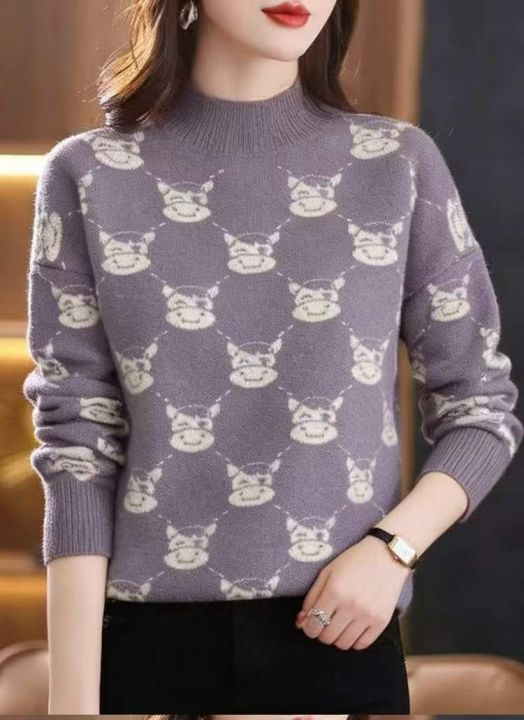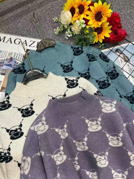 秋冬新款韩系慵懒风宽松百搭提花包芯纱套头毛衣,独立...
