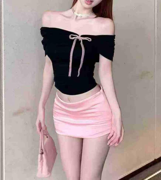 甜欲棉质辣妹一字领上衣599件7.8面料柔软有弹力,绑带...