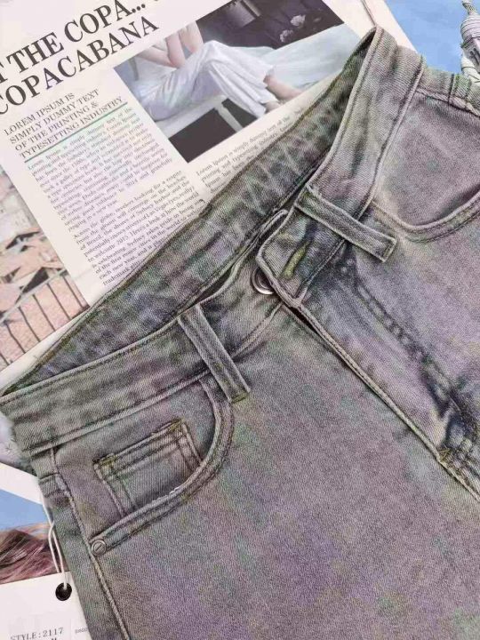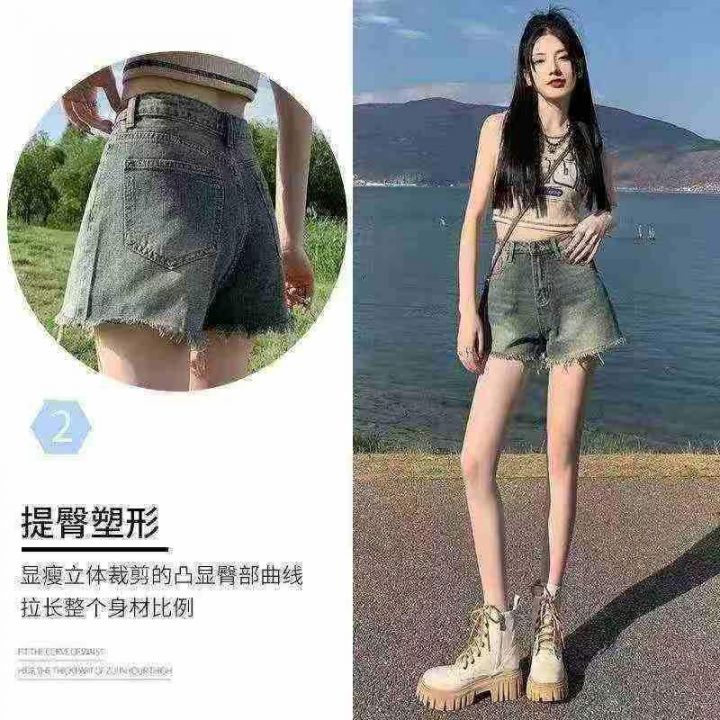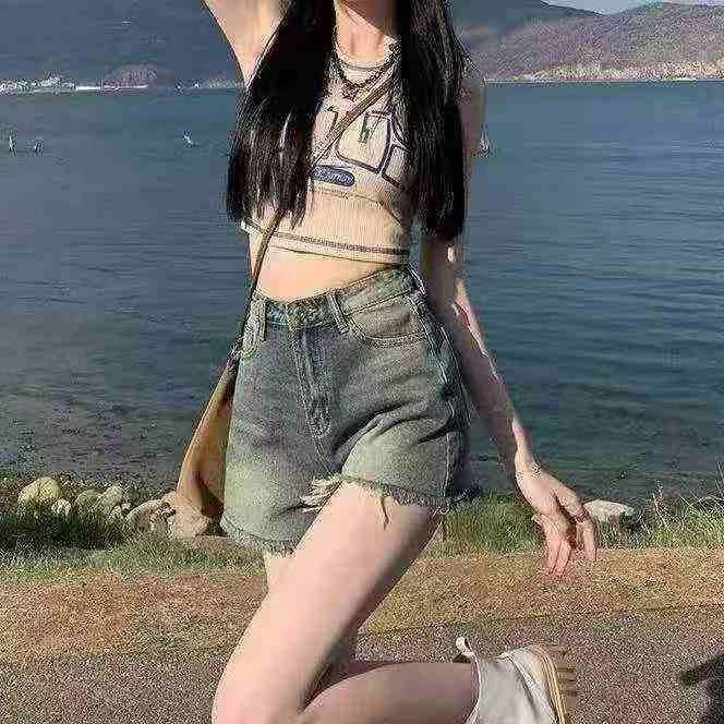 复古毛边夏季辣妹高腰显瘦遮肉弹力牛仔短裤,单款单色...