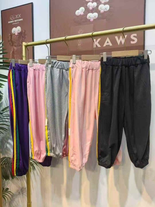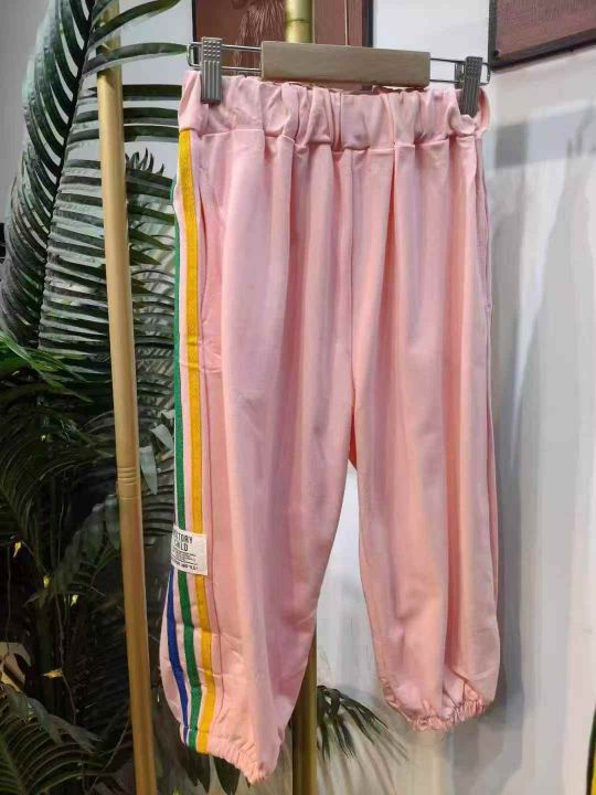 520件男女童春夏薄款休闲运动裤外穿束脚七分裤 图片款色,码数2-5(120-150)独立包装。