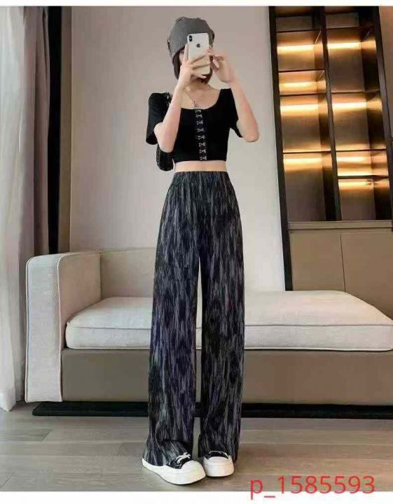 全清5.5女士夏款薄款冰丝扎染休闲裤高腰垂直感阔腿裤可家居也可外穿,有独...