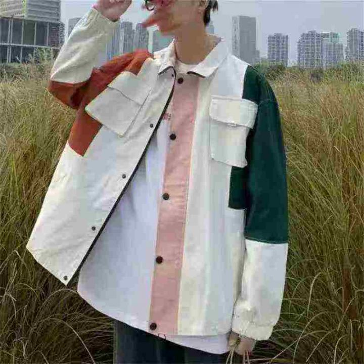 全清12.8,春秋新款水洗棉工装夹克潮流拼接撞色宽松大码休闲夹克...
