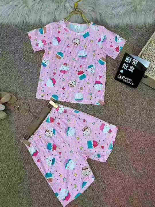 童装短袖短裤冰丝套装,数量630套,单款两个颜色,尺寸90~120码,独立拉链...