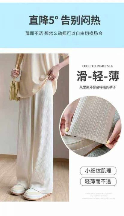 264条.冰丝阔腿裤女夏季薄款米白色高腰垂感休闲直筒裤宽松凉感运动裤子,独...