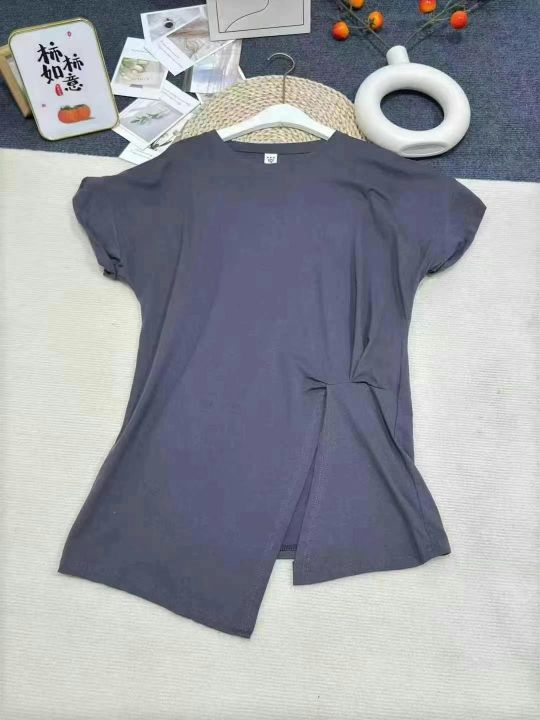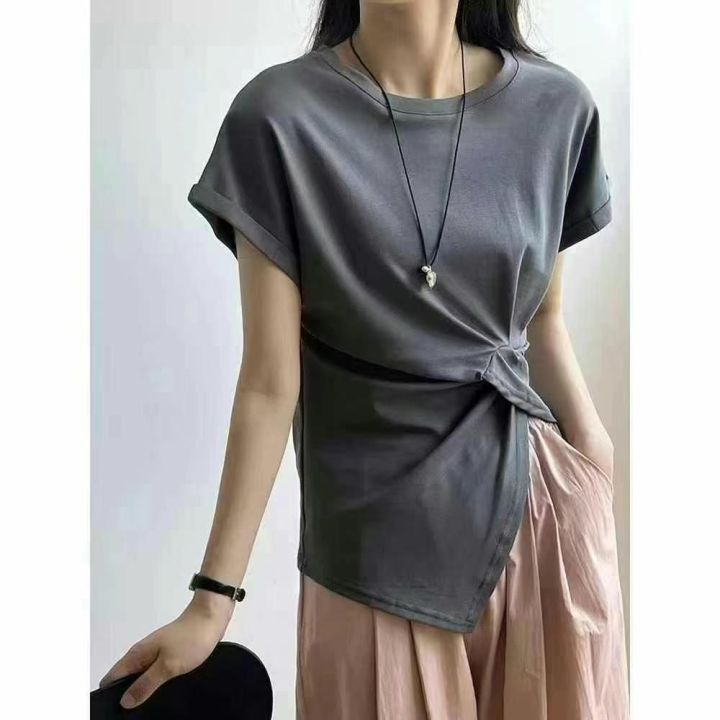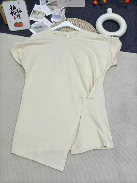 纯棉180-220克大码百搭褶皱收腰短袖T恤女2025夏季新款不规则下摆显瘦上衣打底外穿,数量1540件,码数M-3XL,后领包边,工厂货10件一个包装,全清6.8元,分货7.5元