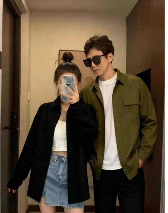秋季新品男女同款原宿风复古港风韩版长袖潮流休闲简约百搭宽松工装衬衣,独...