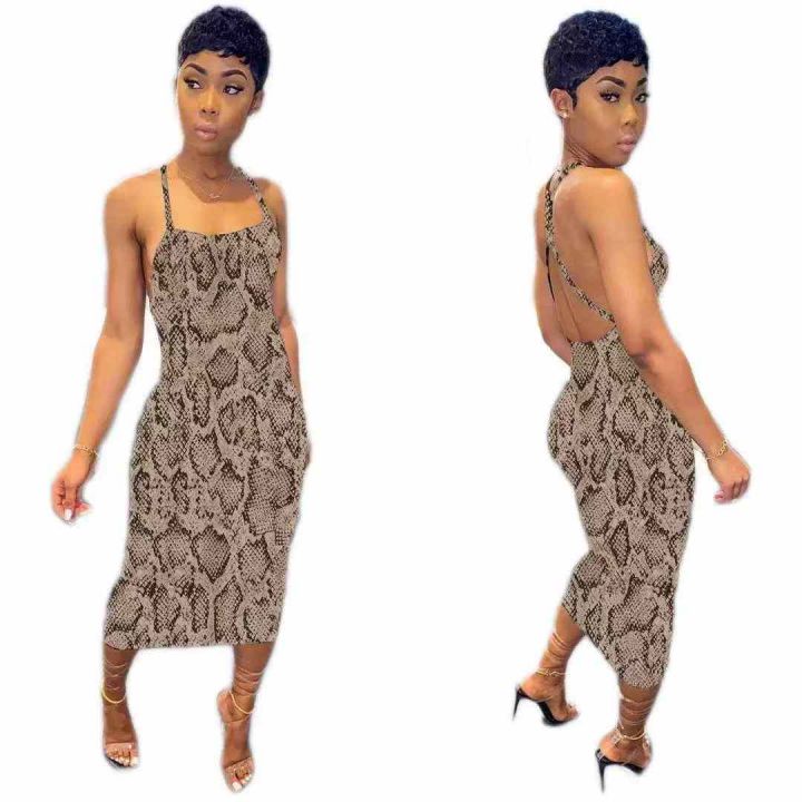 7.8清时尚三色印花性感吊带露背斑纹迷彩连衣裙,整款多色,数量300条左右,...
