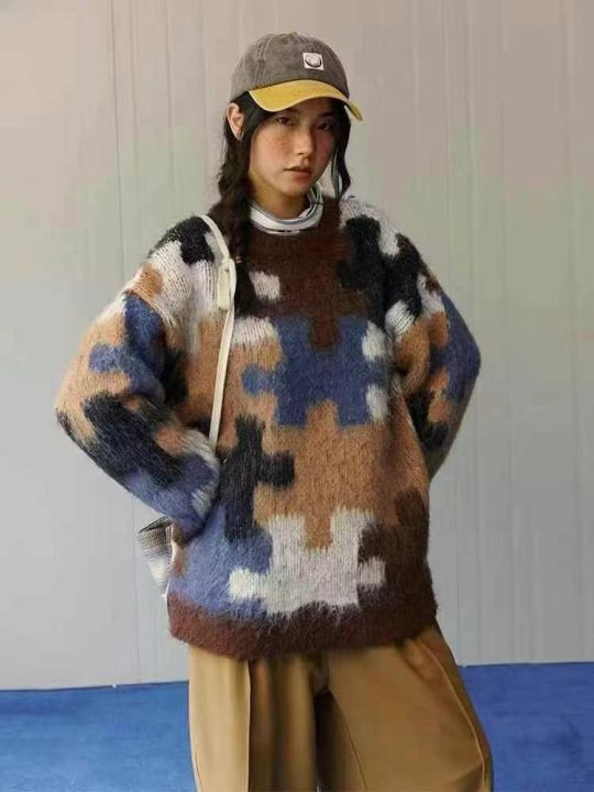 编号:[2337] ¥12.8元 男装/男士服装 上衣 毛衣/毛线衫/针织衫 套头 春秋款 复古方块拼色拉绒套头毛衣面料厚实情侣款复古方块拼色均码独立包装 库存:50