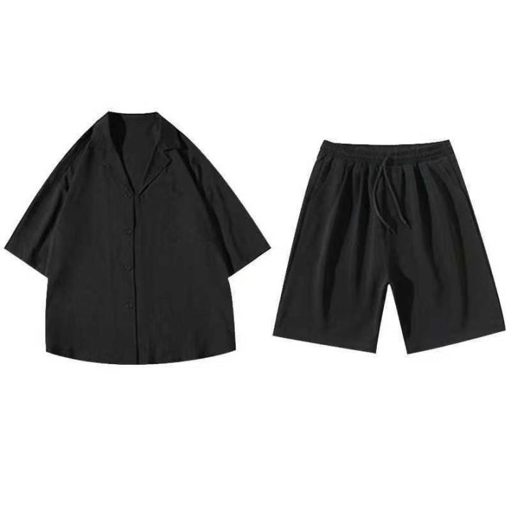 男装宽松新款休闲中裤港味ins潮运动套装,M-L码,黑色...