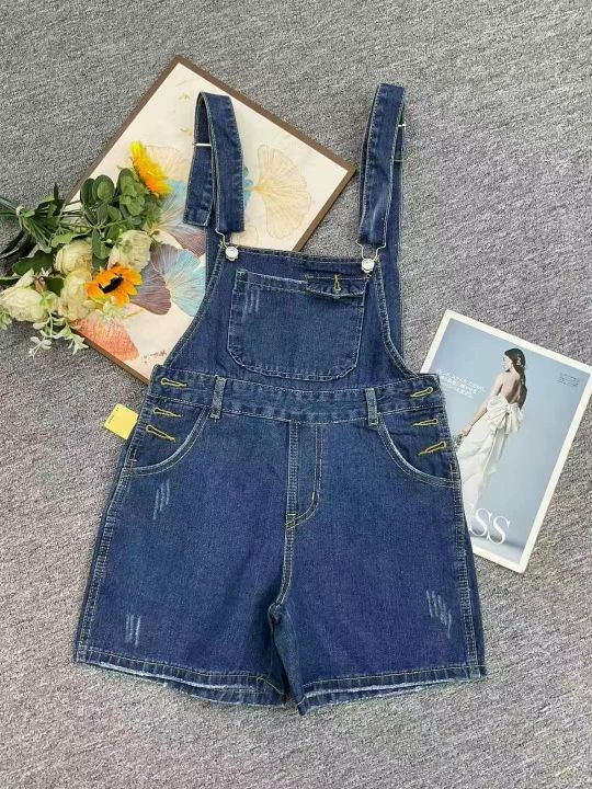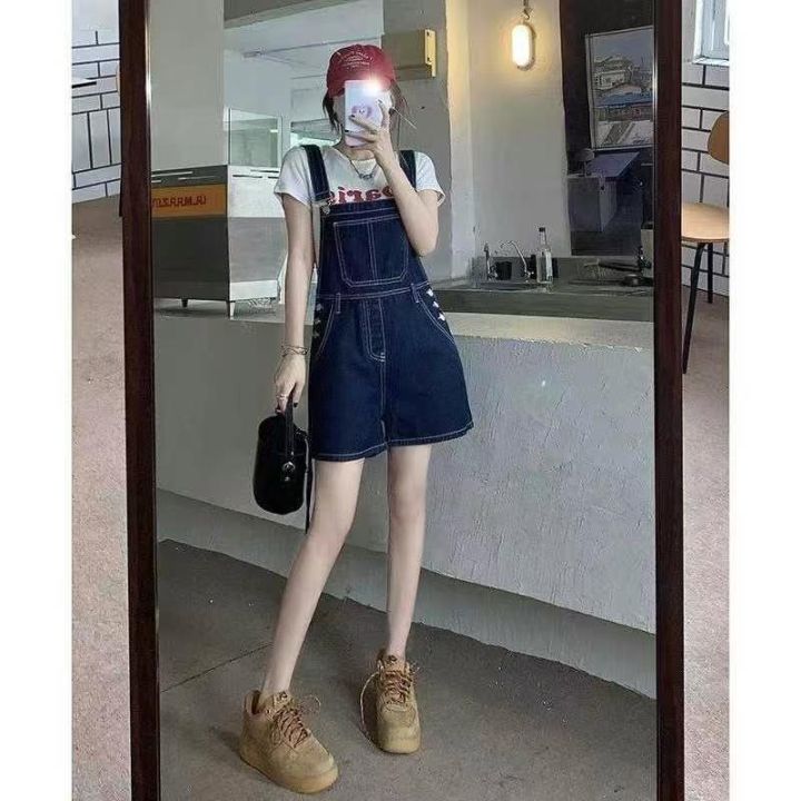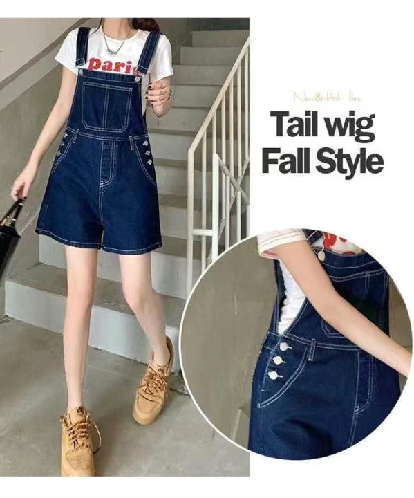 夏季新款高腰减龄阔腿洗水棉牛仔背带短裤,独立包装带...