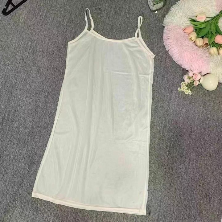2.9清1400件牛奶丝吊带裙睡衣宽松单层内搭打底衫半透明中长衬裙内衬家居打底吊带裙透气打底裙女 码数均码 独立包装