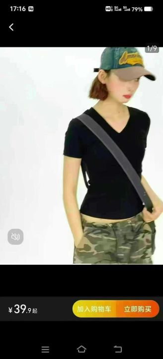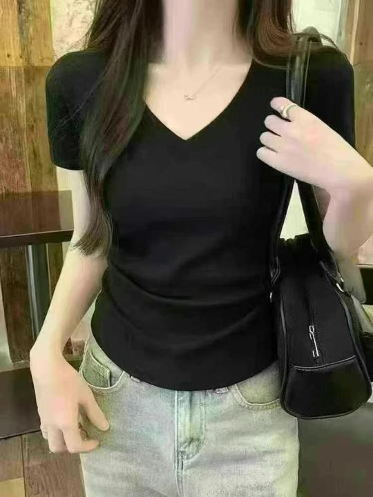靓妹纯欲风女百搭修身版V领辣妹短袖T恤,面料柔软亲肤...