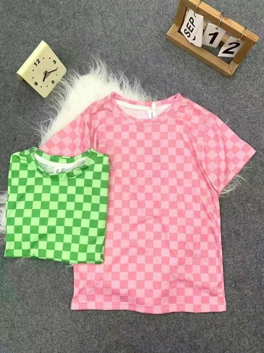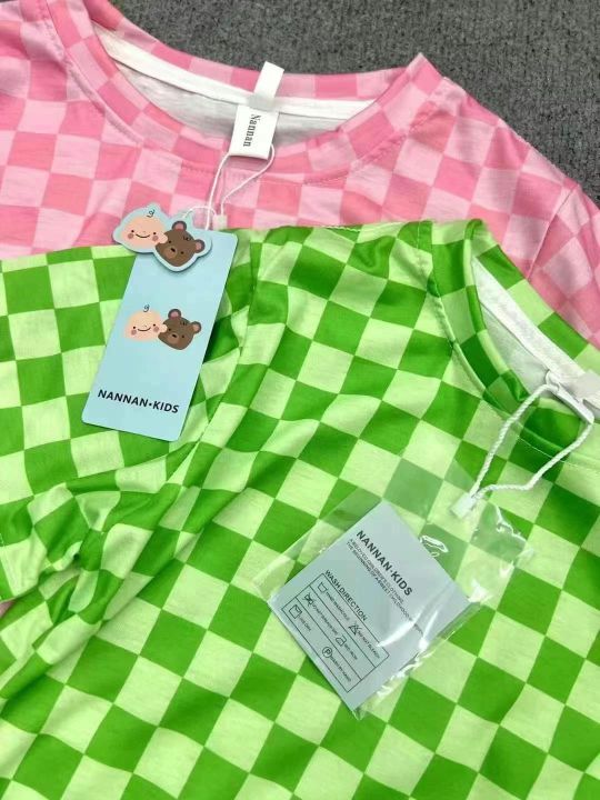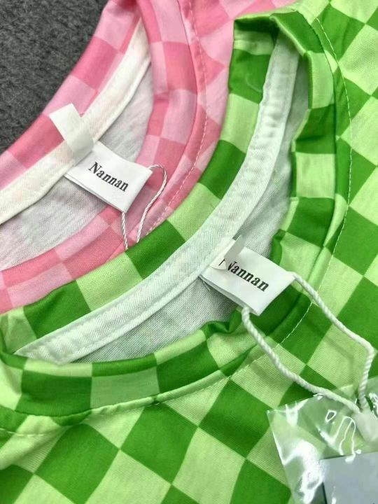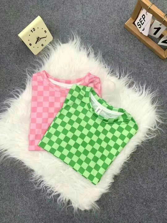 童装棋盘格洋气时髦T恤上衣