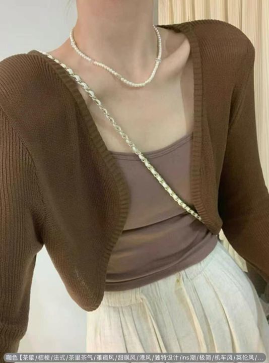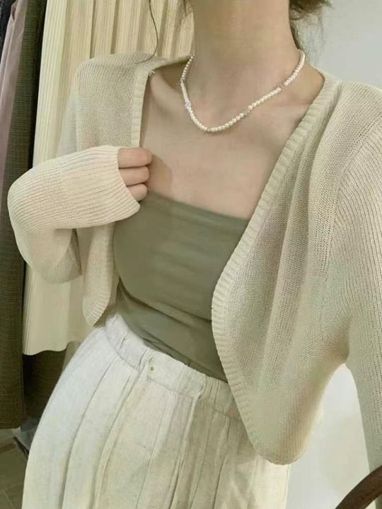 夏季新款冰丝薄款配吊带裙防晒外搭坎肩针织开衫,独立...