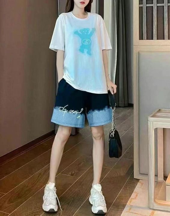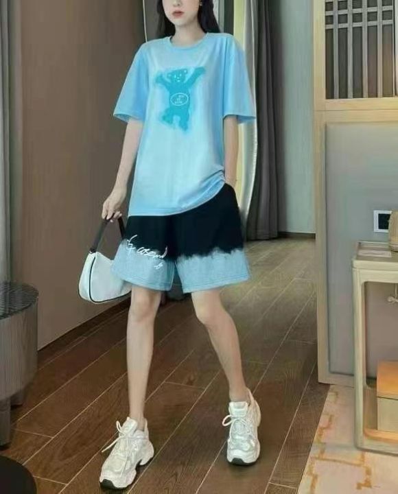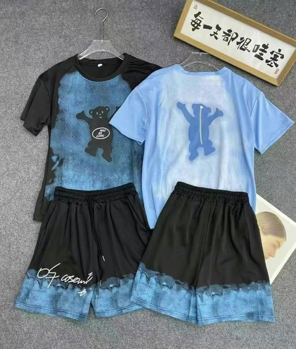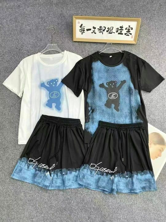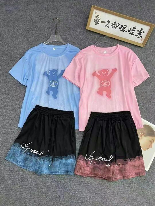 上衣前后印花,裤子松紧腰有口袋,