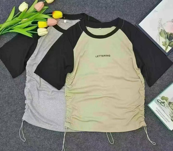 编号:[2580] ¥6.8元 女装/女士服装 上衣 夏天 短袖卫衣/T恤 辣妹上衣冰丝罗纹面料货品新净女装插肩袖侧抽绳1-7码带卡纸独立包装 分货加:0.5 库存:598