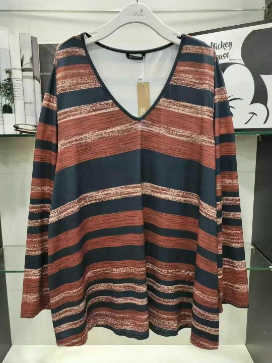 3.88元秒杀[爱心][爱心] 春秋超大码高弹力女深V领长袖条纹欧美款T恤,独立包装吊牌,码数45-58,数量106件。。。