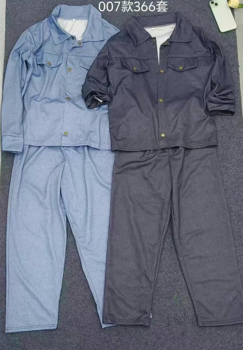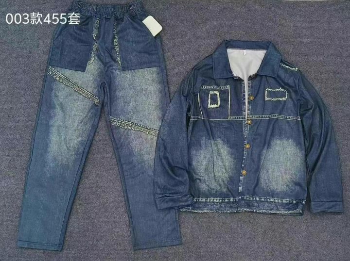 春夏薄款仿牛仔新款女装两件套套装,七个款共5870套,1.2.3码,版型宽松独立包装,全清8.8元,挑款9.8元