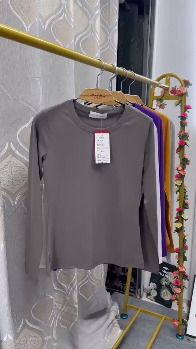 全清5.9 秋季棉女装长袖t恤,春秋新款修身圆领上衣,纯色简约内搭打底衫...
