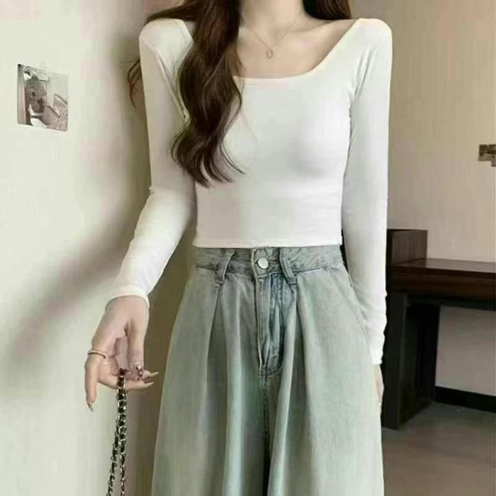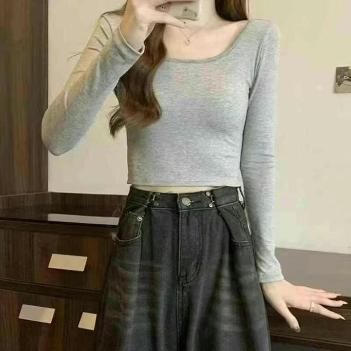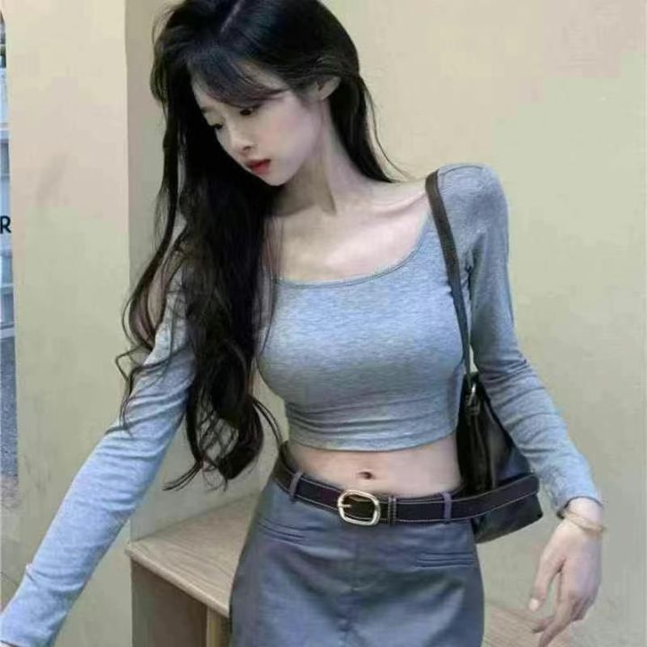 天猫在售款2300件左右高品质冰丝螺纹靓妹短款长袖T恤,高弹力,单款四色,S-XL,全新货三件一包装