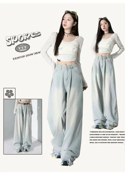 春季新款高品质女装洗水棉网红爆款阔腿牛仔长裤,独立...