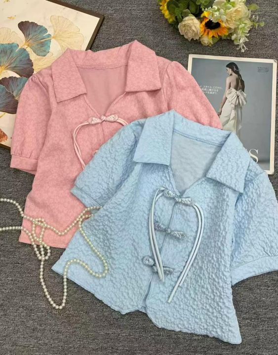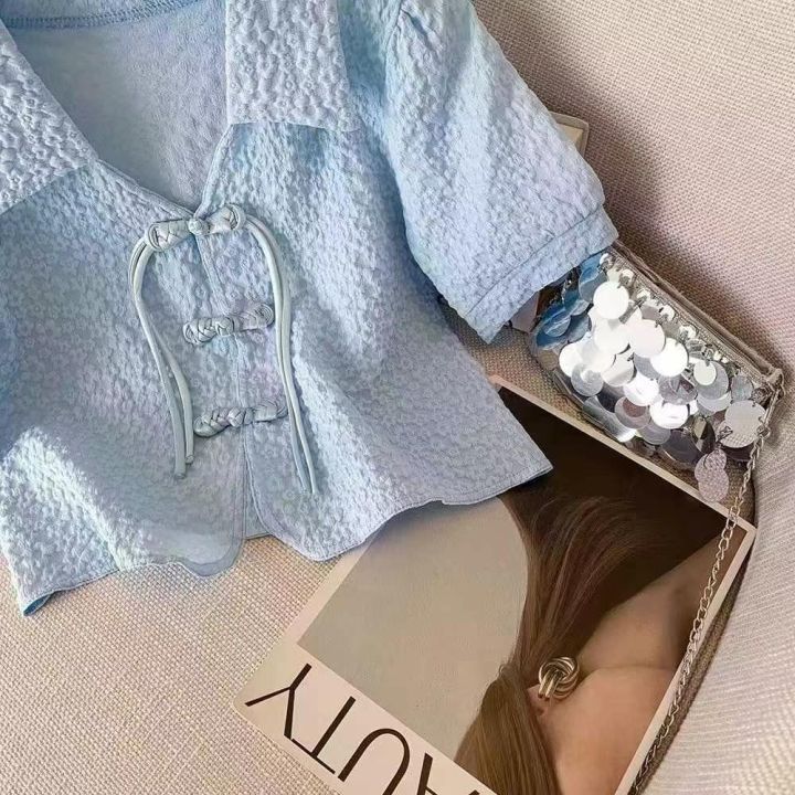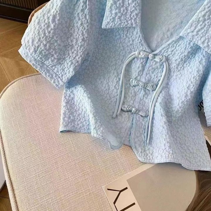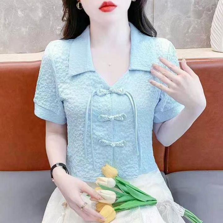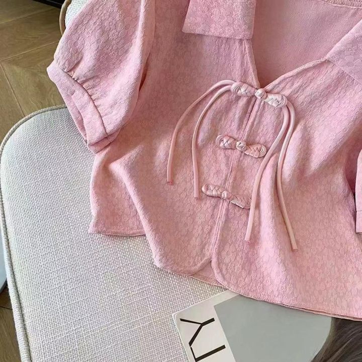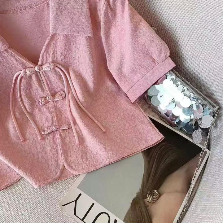 夏季新款高品质女装新中式盘扣短袖雪纺小衫,独立包装,均码宽松款,223件,全清9.9元超低价秒杀!分货加一!