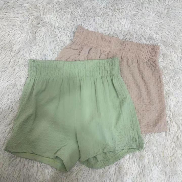 全清5.5元,潮流时尚女装短裤 整款 橄榄绿 樱花粉 两个颜色 重工提花工艺 面料柔软舒适 垂感十足独立包装 码数S-XL 总数1480件左右,分货+1