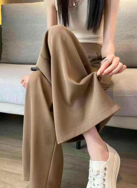 全清6.8卡其色窄版阔腿裤女早春季2025新款高腰显瘦西...
