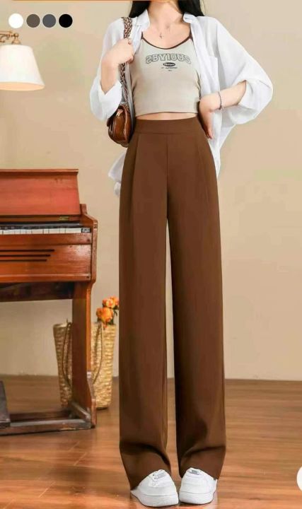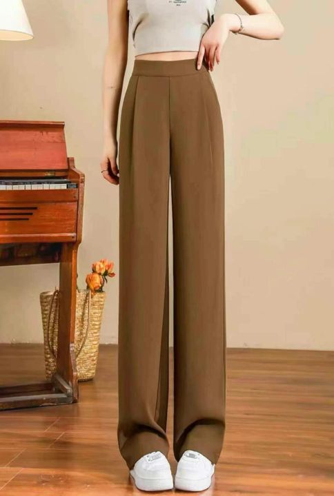 卡其色窄版阔腿裤女早春季2025新款高腰显瘦西装裤休闲垂感直筒裤,140条,(型号5019#18)均码,独立包装,超大弹力裤腰。