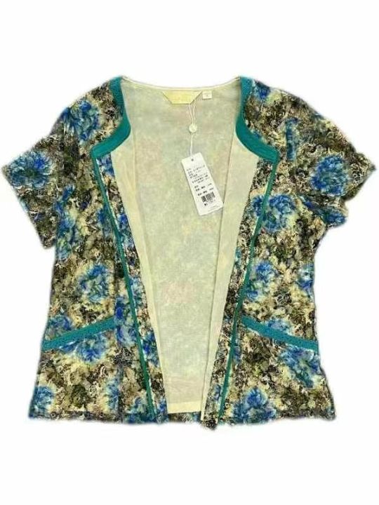 高品质台湾纱妈妈装圆领开衫修身短袖上衣,双层统一锦...