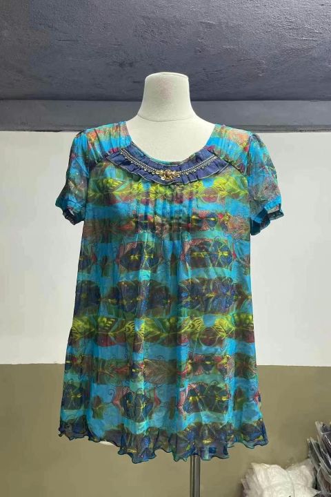 高品质台湾纱淑女妈妈装圆领短袖弹力上衣,双层统一锦纶面料,单款单色,手感柔软,数量100件左右,码数15-21,有独立包装吊牌,吊牌价300多,全清7.9,分货+1(有码数清单)